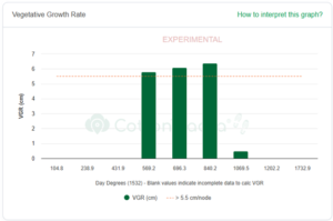 Tracking your crop growth can help understand whether your crop is reaching its potential. By monitoring your crop’s node and height development compared to potential rates of crop development, you can identify if there is an imbalance in the vegetative growth rates (VGR), and this information can be used to understand if management interventions with MC are needed.