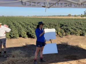 Katie Broughton, CSIRO, presenting at a field day in the 2023/24 season.
